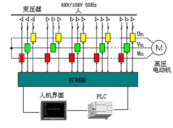 設備采用高-高電壓源型變頻器電路結構,功率單元串聯(lián),輸出疊加成高壓,直接輸出到高壓電機。