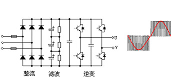 當電機處于拖動(dòng)狀態(tài)時(shí),能量從電網(wǎng)經(jīng)整流回路、逆變回路流向電機,變頻器工作在***、第三象限。輸入電壓和電流波形如圖所示。