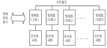 變頻器具備主從控制功能,多臺變頻器之間可通過(guò)數據總線(xiàn)組成主從控制網(wǎng)絡(luò )。將其中的一臺設為主機,其他設為從機,主機實(shí)時(shí)采集各從機的狀態(tài)信息,同時(shí)發(fā)送給各從機頻率、轉矩指令,實(shí)現各臺變頻器的功率平衡和綜合控制。